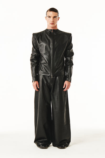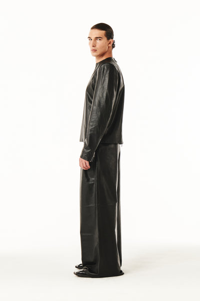 The Eros Pant Black is made from 100% genuine leather, featuring dual inverted pleats that form dramatic volume and movement.